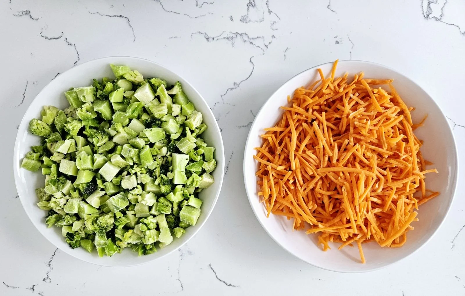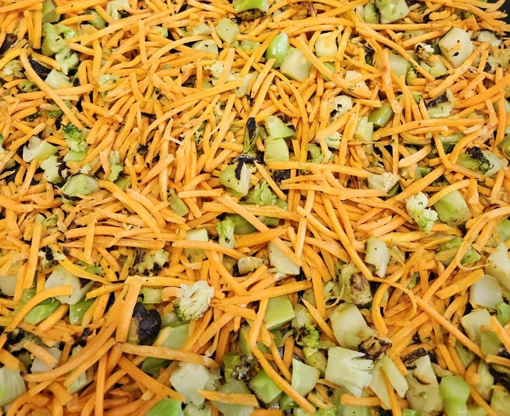 Add the chopped broccoli to the skillet in a flat layer. Top the broccoli with the shredded carrots. Heat the vegetables for 15-17 minutes until they have a nice char. That’s why this recipe is so flavorful!
